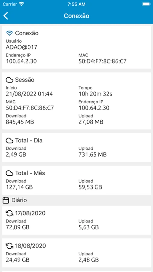 * Consulte seu consumo de rede