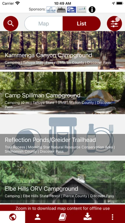 Discover WA has everything you need to find your next adventure in Washington State. It has trails, trailheads, campgrounds, beaches, boat launches, water access, picnic areas, view points, parks, recreation lands and other year round and summer recreation opportunities throughout the state. Use the maps when connected to the internet, or download regions for off-line navigation. The app draws from over 15,000 recreation opportunities managed by federal, state, county, city, non-profit, utility/port and private organizations. It provides everything you need to know to find your next adventure from passes and sports, to facilities and what pass is required. You can filter to highlight places that meet your needs such as ATV trailheads that do not require a pass, campgrounds that have RV hookups and a pool, places with an off leash area, places that rent recreation equipment and are open on Sunday. Whatever you are looking for, we can help you find it.