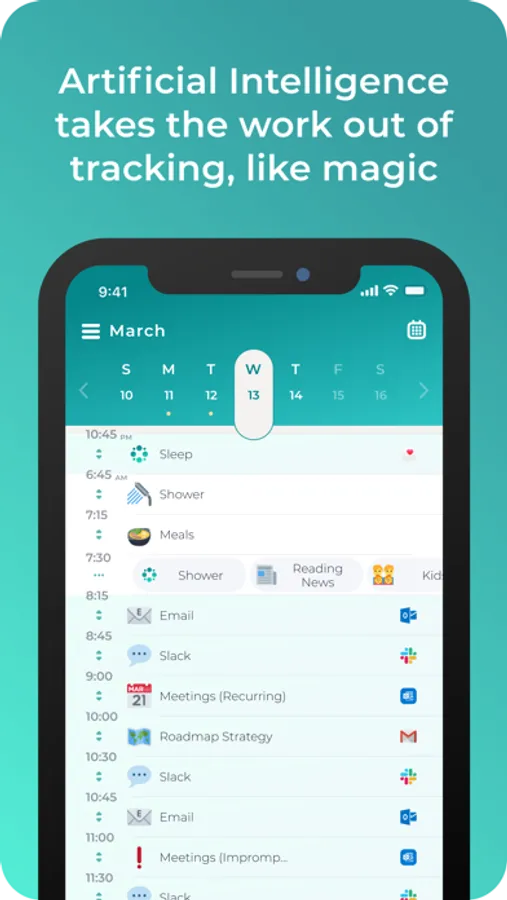Use Mana’s beautiful interface and machine-learning powered suggestions to log your time. Integrations with apps you already use make pen & paper journaling and complex calculations a thing of the past.