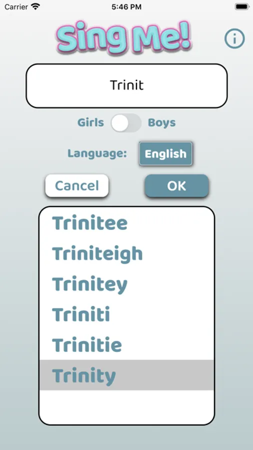 SingMe™ provides thousands of different names of your choosing, so why not get songs for the whole family! New names are added all the time and the app is available in several languages. Downloading SingMe™ is free, including the first song of every name you add. For a very small fee you can get access to even more songs.