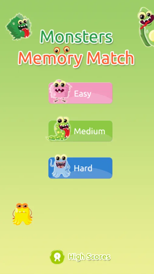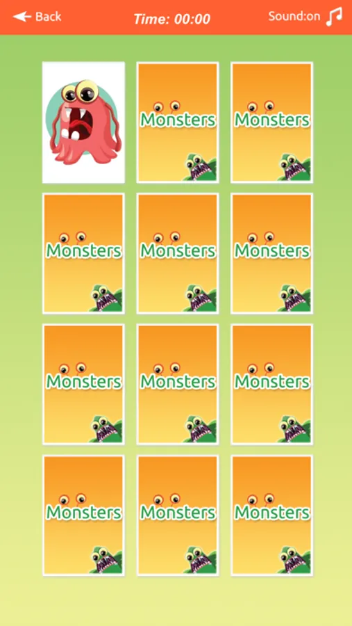 Enjoy playing this memory game with pictures of cute monsters. Tap the cards and if you match a pair they will disappear.