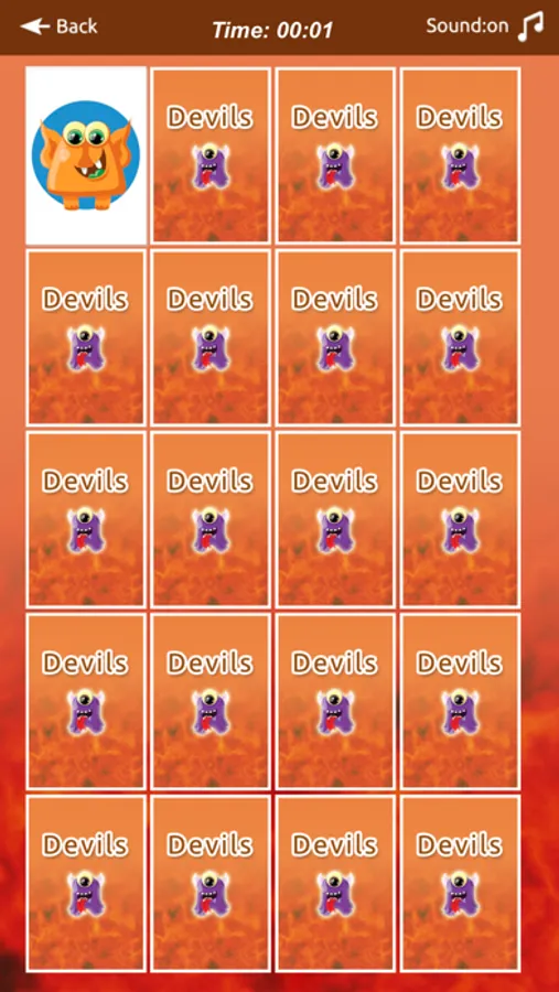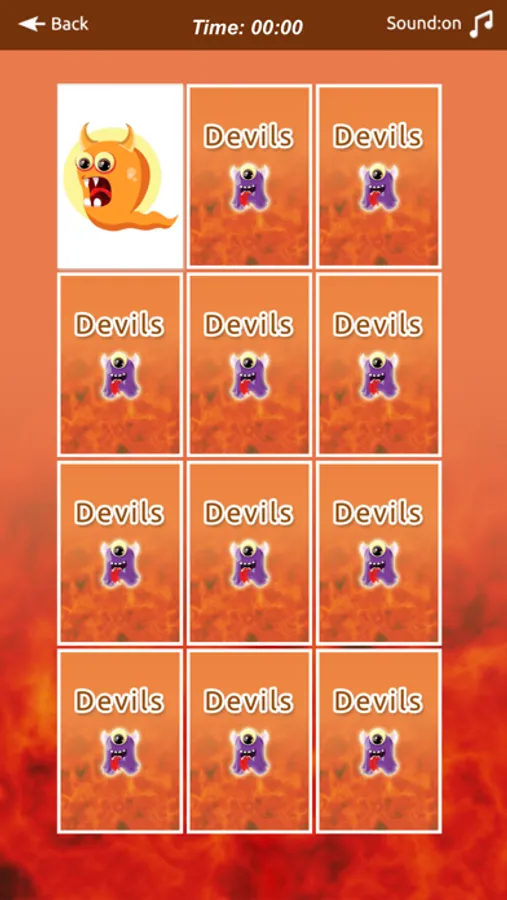 Enjoy playing this memory game with pictures of cute devils. Tap the cards and if you match a pair they will disappear.