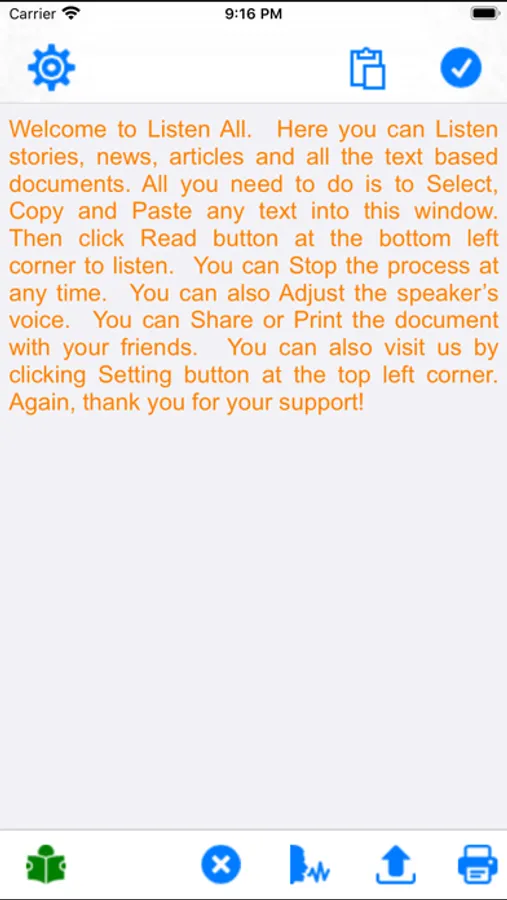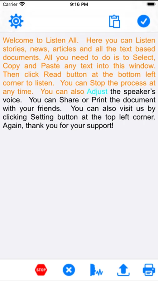 ◉ Select, copy and paste any news, articles and stores and Listen them instead of Reading;