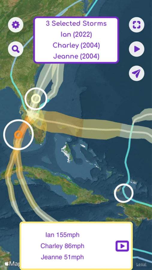 Cane allows you to pull up past hurricanes and replay them in animated reproductions of the storm. This app gives you options unlike any other tracker out there! The 2 most incredible features that Cane provides are: