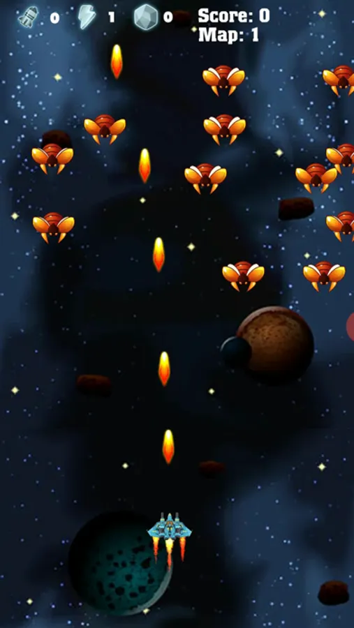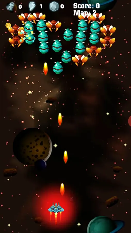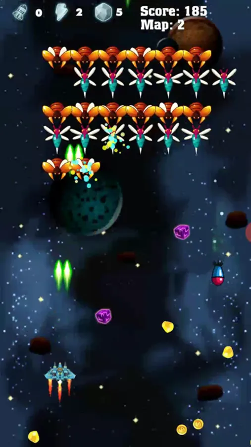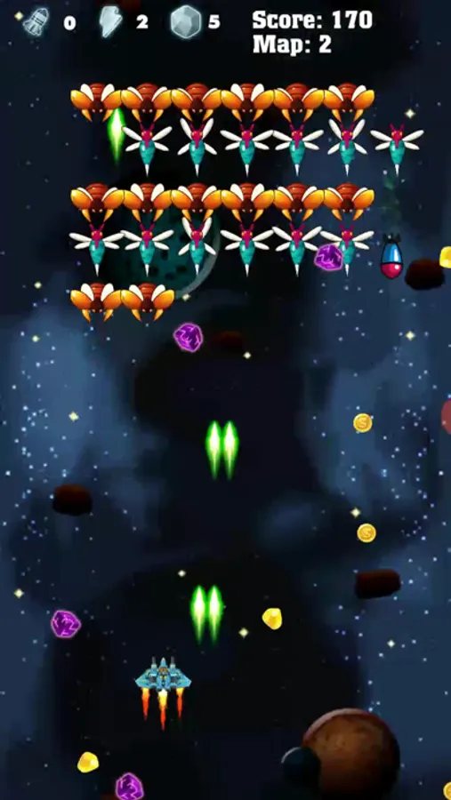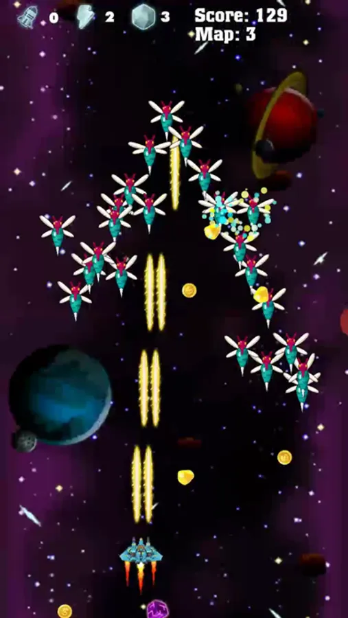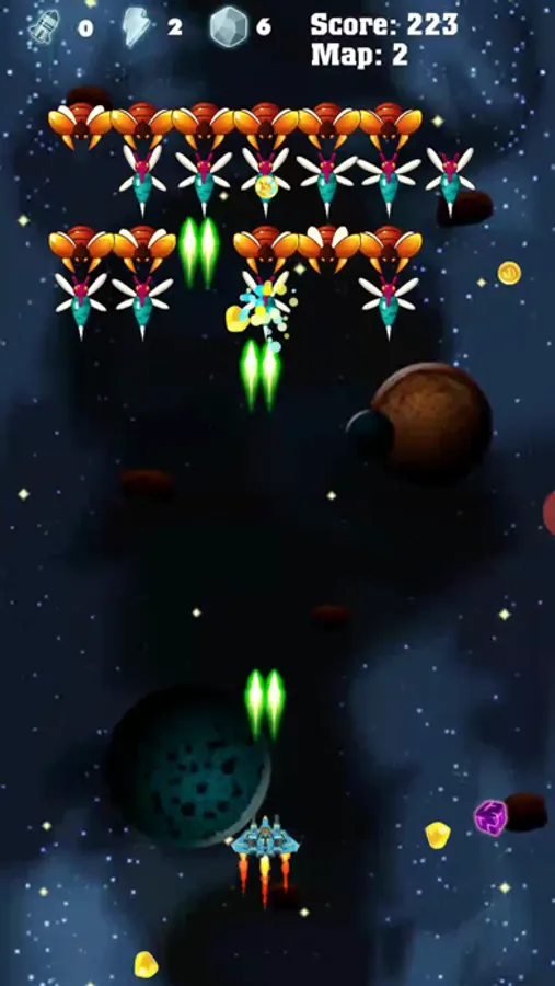 - Use coin and gem to upgrade or evolve your spaceship to fight with giant enemies and alien invaders.