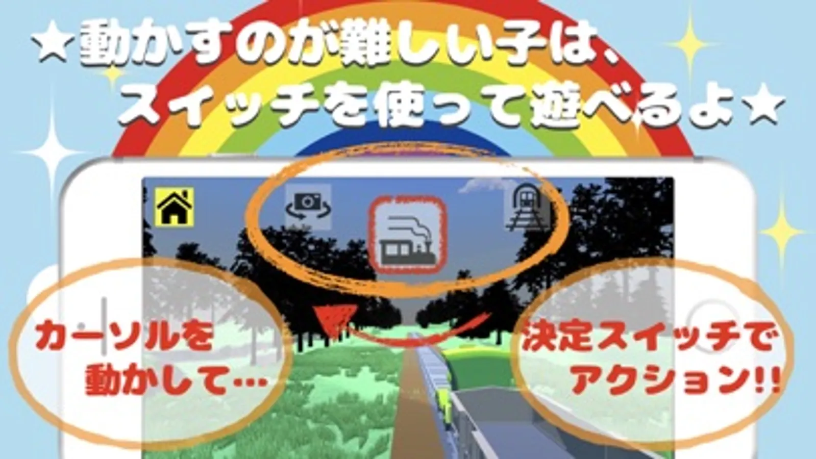 このアプリは、体を動かすのが苦手な子でも楽しめる、機関車ゲームアプリです。