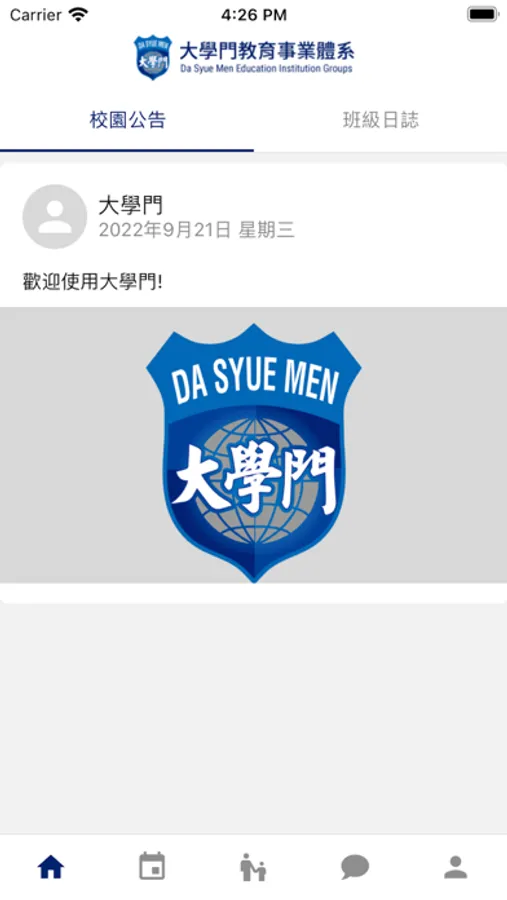 - 班級通知:即時收到校內公告,例如:颱風停課訊息、課程優惠等等。