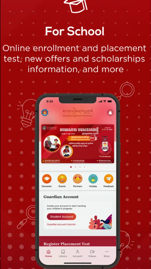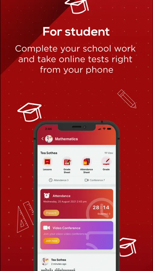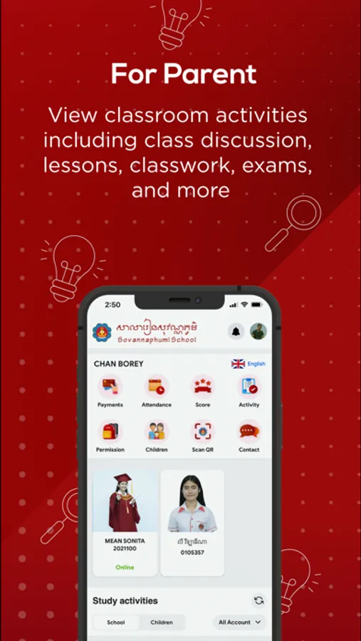The Sovannaphumi School App provides a convenient online platform for teacher and student interaction and communication, student assessment, learning resources center, and learning progress tracking for teachers, students, and parents.
