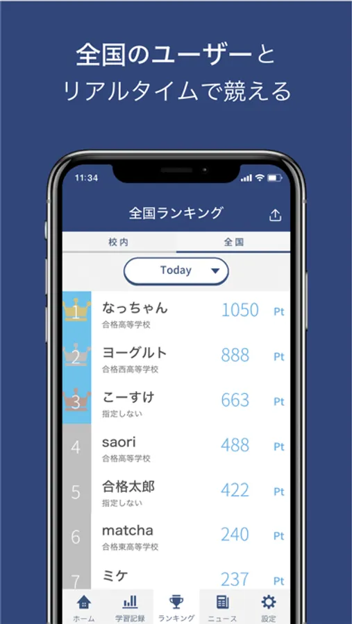 正解単語数で全国・校内のユーザーと競争できます。上位入賞で自分の名前を他のユーザーに知らしめましょう!