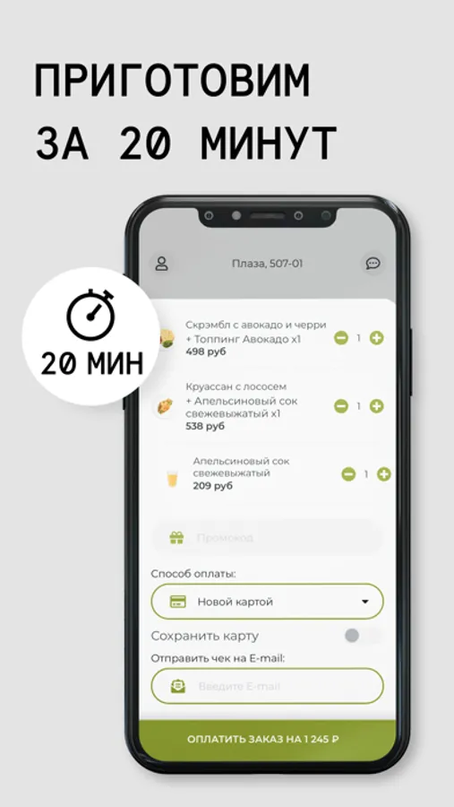 Мы сделали это приложение, чтобы вы больше не стояли в очереди и не бегали от прилавка к прилавку с вопросом «Где моя паста, чувак?». Просто присаживайтесь за стол, сканируйте куар-код и делайте заказ. Засекайте 20 минут и гарантированно наслаждайтесь едой (а не как это у всех обычно бывает).