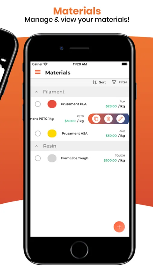 This app allows you to manage your printers, materials, worksteps, customers and my more! With this information stored on your device, you can calculate your prints in just a few clicks.