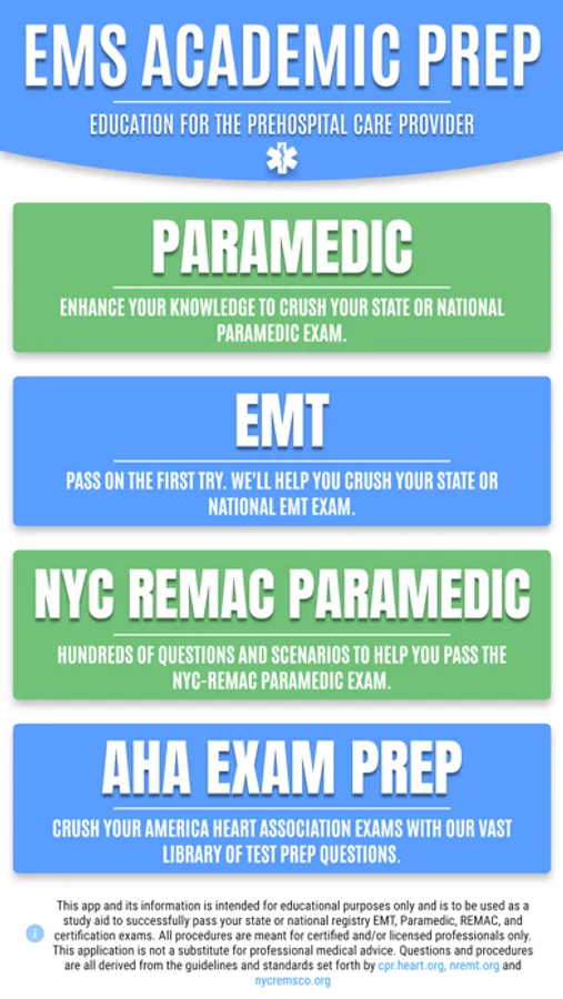 EMS Academic Prep is dedicated to help you enhance your knowledge and prepare you for your State Paramedic, NREMT Paramedic, EMT, NR-EMT, or NYC-REMAC Exam. Our app contains a wide variety of questions based on many distinct categories which you will be tested on during your exam. Examination content reflects the National EMS Educational Standards for the EMT & Paramedic categories as well as protocols for the NYC REMAC exam.