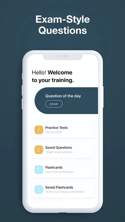 Improve your knowledge with 900+ exam-like questions. Remember more using Flashcards. Get access to practice exams that will help you pass the first time.
