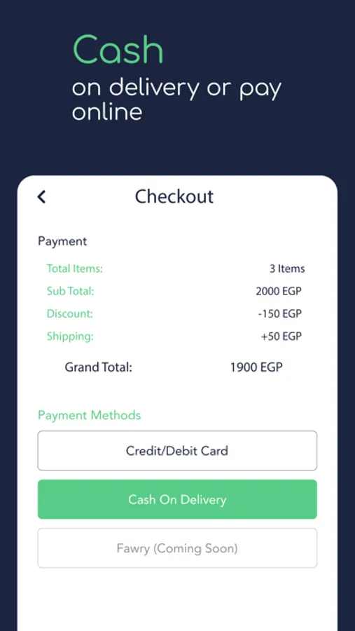 • Multiple Payments Methods (Online Cards & Cash on Delivery)
