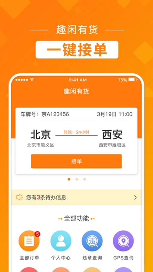 趣闲有货主要实现客户在线跟踪运单、支付、账单查询等功能。
