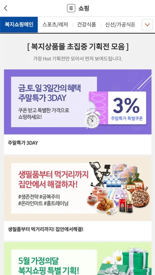 1. 출퇴근 특가, 24시간 특가, 주말 3% 쿠폰 등 다양한 타임 세일