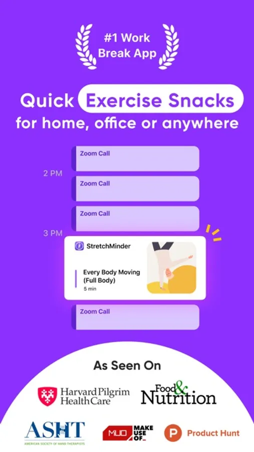 Join thousands of users enjoying StretchMinder every day as we break sedentary habits and become healthier, more productive, pain and stress-free — one activity break at a time.