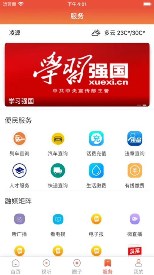 凌源融媒客户端软件提供移动互联网新媒体传播与资源整合解决方案,提供节目的全媒体(图文、语音、视频、音视频直播等)互动、交通资讯、实时交通路况特色服务等多种功能。