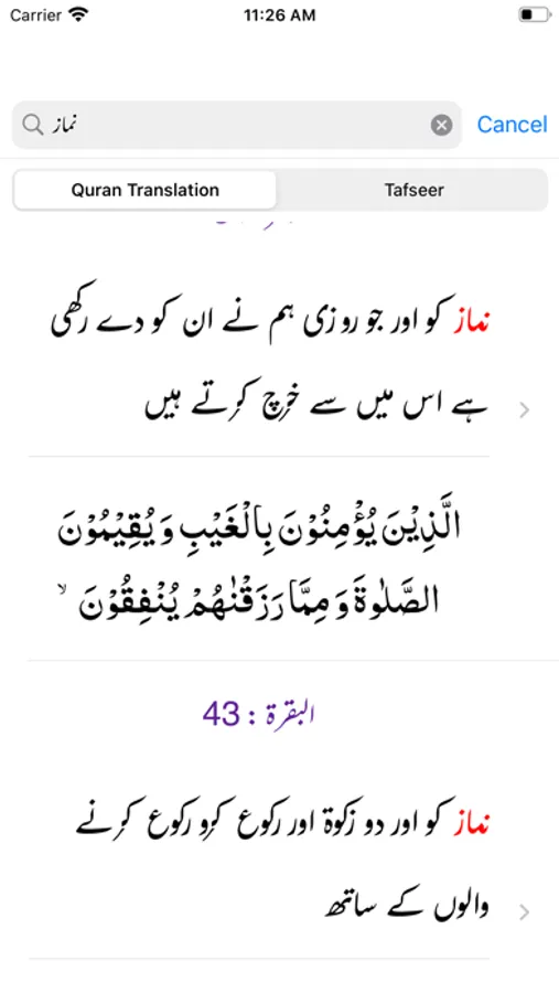 - Advance Search functionality in Quran, Translation (Tarjuma) and Tafseer