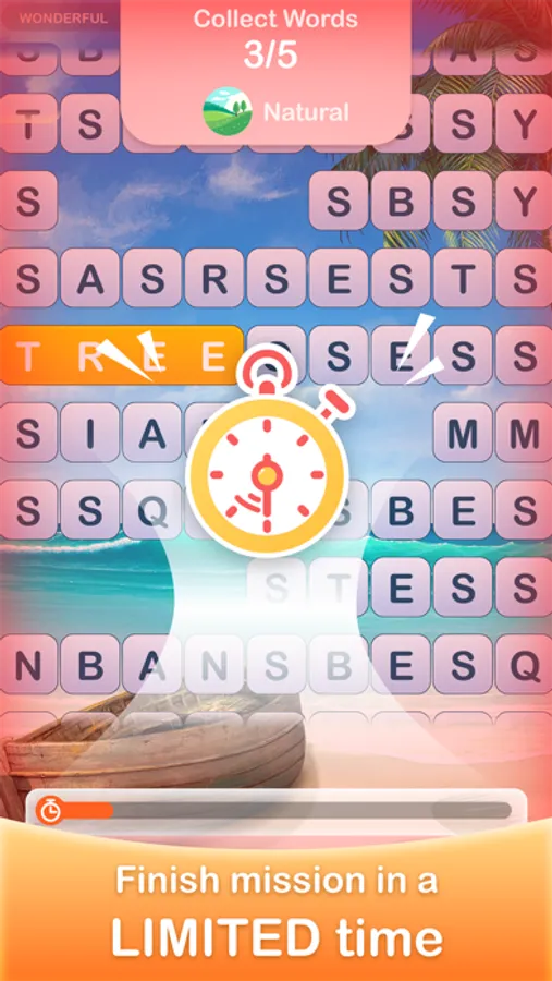 Unlike other word games, the great challenge for you in Scrolling Words is to find all target words of the same category from scrolling letters. Countdown and the scrolling speed also increase your challenge difficulty.