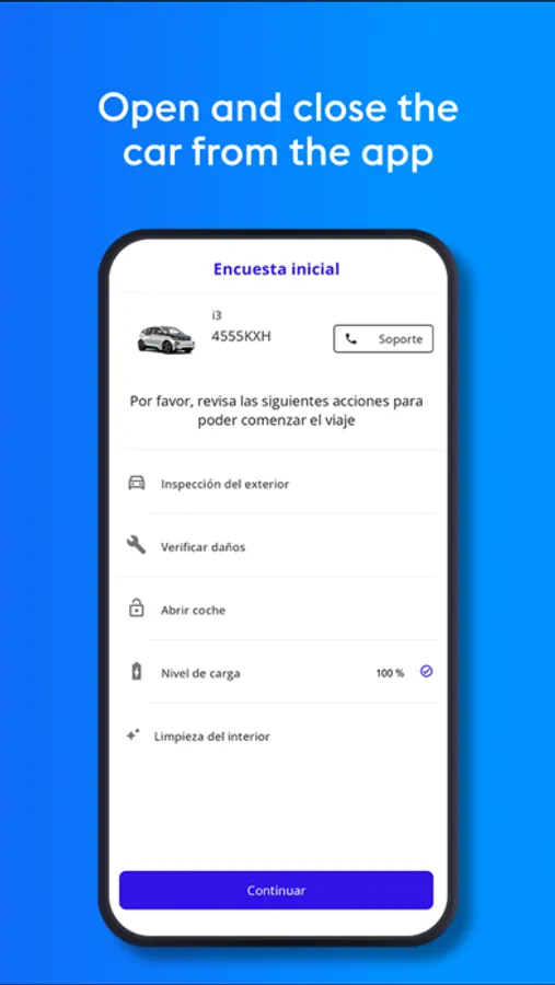 The booking process is 100% online. Instructions to access each parking, as well as the autonomy and battery level information is found on the app. Unlock and lock the car with the app and use the keys that you will find inside the car during the trip.
