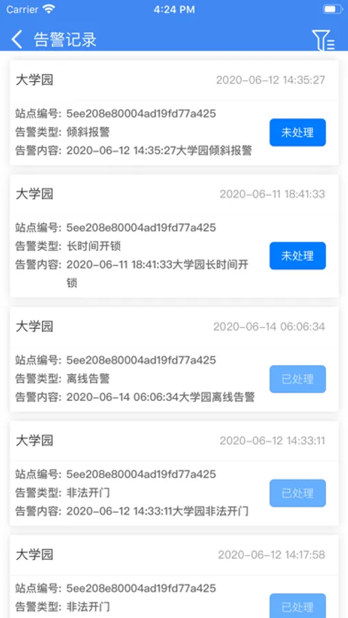 通过app现场检查设备实时状态,轻松排除故障,大大降低运维过程的难度,通过在线的远程授权机制轻松解决人员责任划分问题