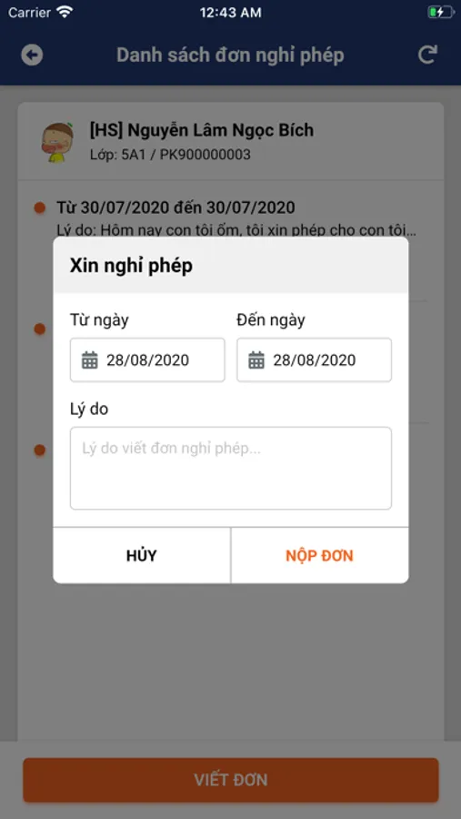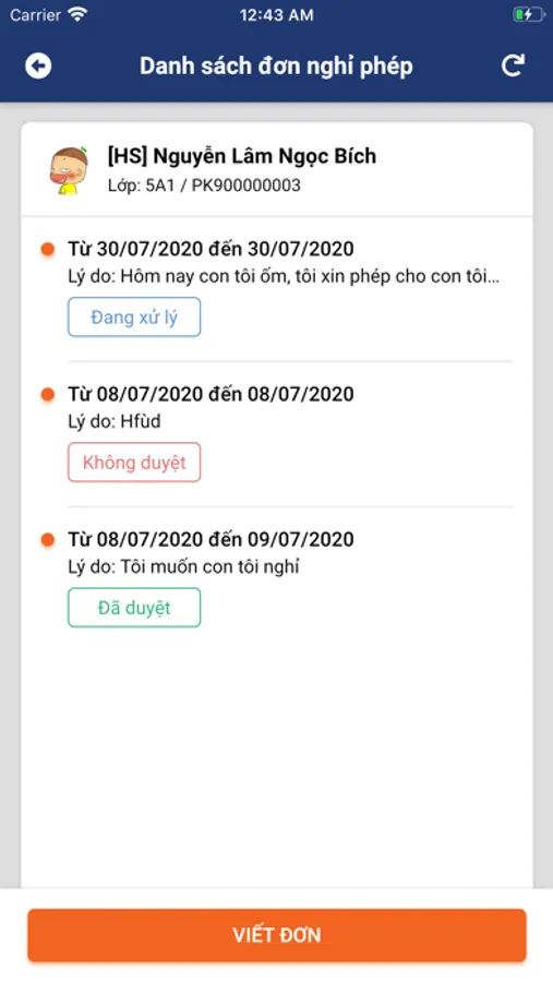 - Giáo viên duyệt đơn xin nghỉ phép trực tuyến