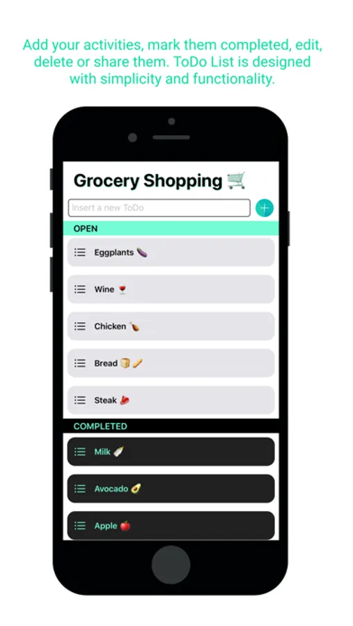 - ToDo List: Plan your day by creating a to-do list for each of your actions. Add your activities, mark them completed, edit, delete or share them. ToDo List is designed with simplicity and functionality.