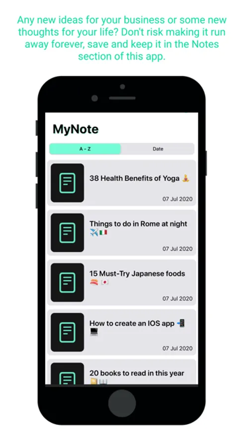 - Notes: Any new ideas for your business or some new thoughts for your life? Don't risk making it run away forever, save and keep it in the Notes section of this app. You can sort them by date or in alphabetical order.