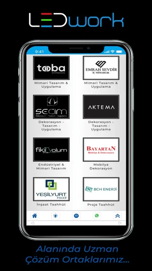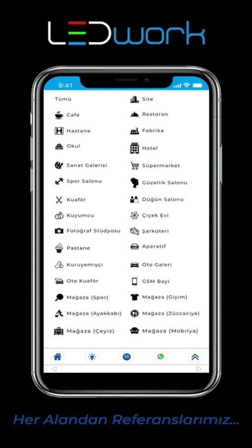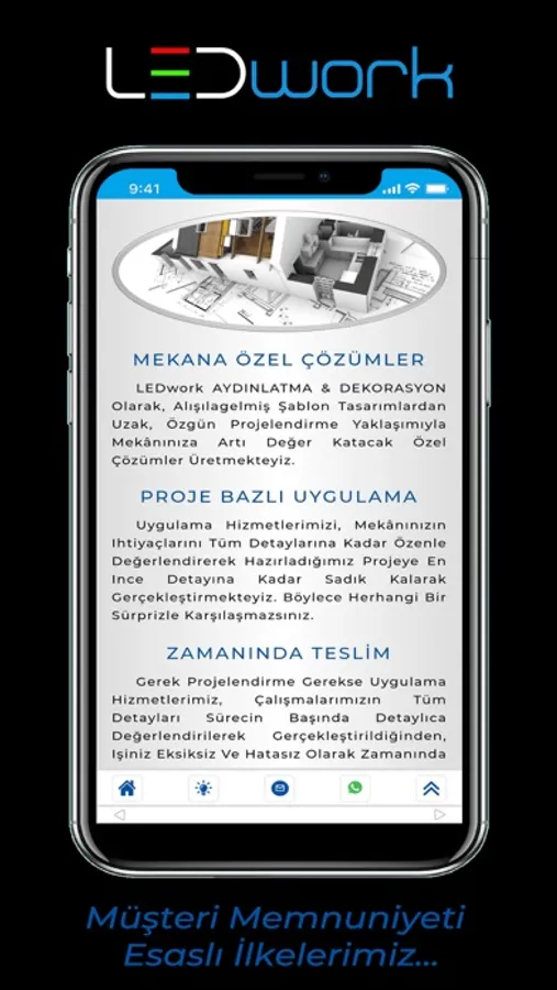 Ev, Ofis, Cafe, Restoran, Mağaza, Spor Salonu, Düğün Salonu, Dinlenme Tesisi, Okul, Fabrika, Park, Bahçe, Dış Cephe ve akla gelen diğer tüm alanlarda sektöründe uzman kadrosuyla dekoratif ve tasarruflu aydınlatma sistemleri ile mekâna özel çözümler sunan LEDwork, anahtar teslim dekorasyon projeleri ile de faaliyetlerine kaliteden ödün vermeden devam etmektedir.