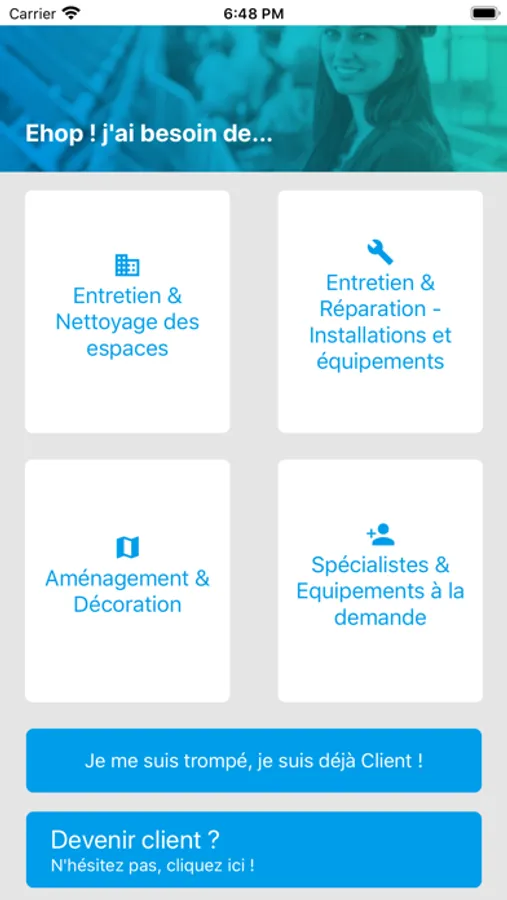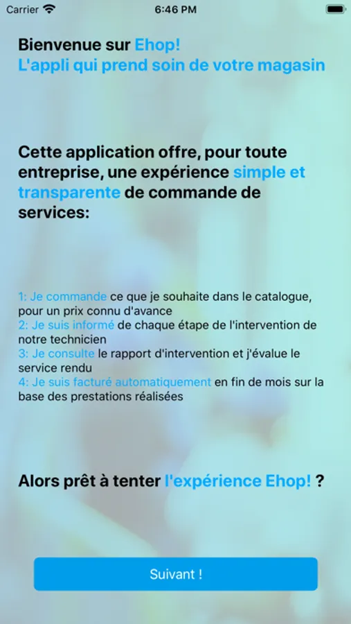 Cette application offre, pour toute entreprise, une expérience simple et transparente de commande de services :