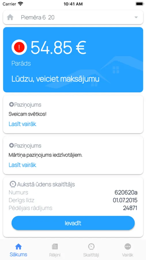 * PAZIŅOJUMI – ātrākais veids kā saņemt operatīvu informāciju no Jūsu apsaimniekotāja;