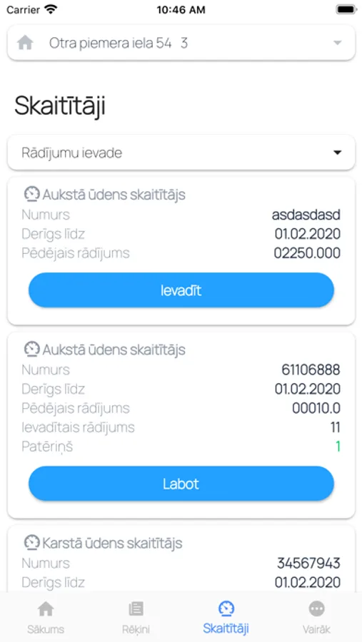 * NODOT RĀDĪJUMUS – ērts veids, kā nodot savus ūdens un citu skaitītāju rādījumus;