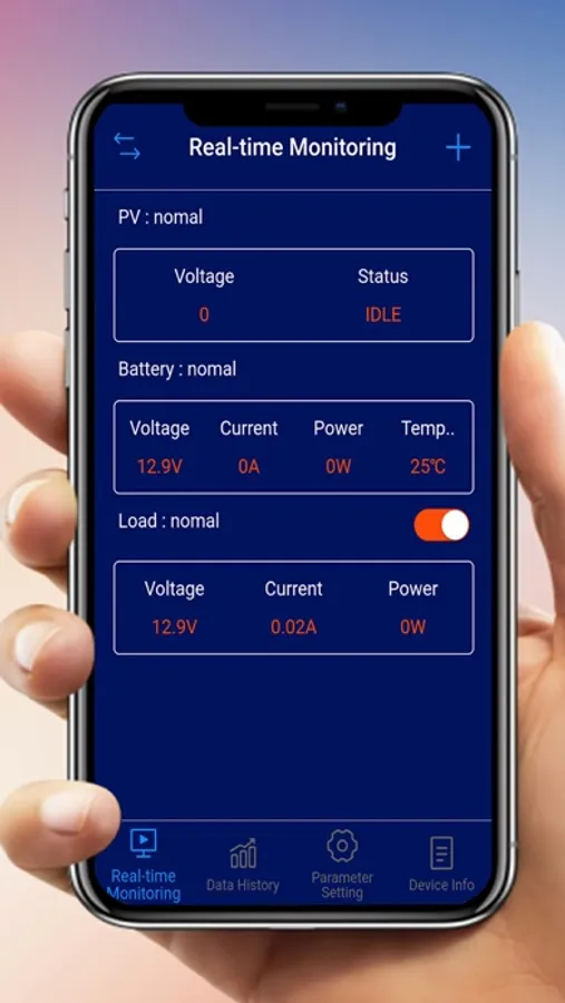 This APP is used as a remote display and control panel for solar charge controller with a certain BT module device connected. In the APP, you can check the status of PV, battery, DC load for the relevant system with charge controller.