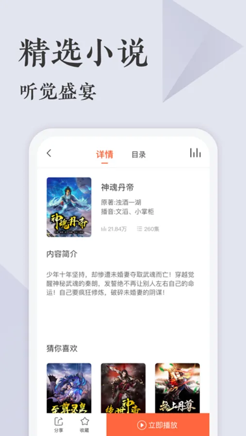 文学名著、玄幻修仙、都市言情、豪门总裁、乡村迷情、校园纯爱、铁血军事、影视援助、盗墓探险、恐怖惊悚、穿越武侠、同人耽美、两性伦理、官场后宫等海量有声小说资源