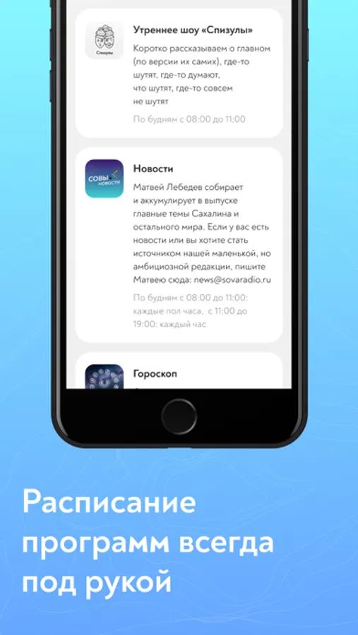 Отличная музыка, сахалинские и мировые новости, крутая афиша мероприятий, позитивные гороскопы и ежедневные развлекательные шоу.