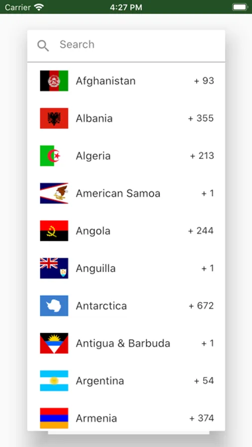 - Search for country code