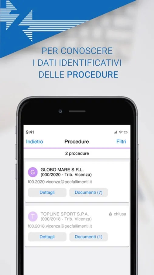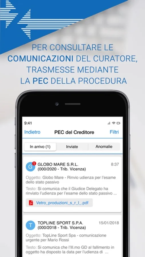 - accedere alla propria area riservata per consultare i documenti messi a disposizione dai curatori