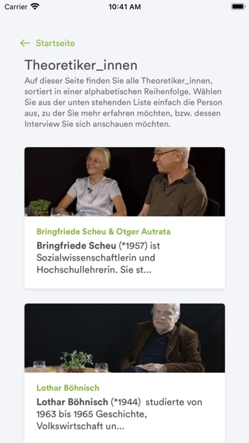 Im Rahmen einer etwa zweijährigen Projektphase nahmen wir Kontakt mit den Hauptvertreter_innen der Theoriebildung auf, um diese zu einem Interview einzuladen. Wir erhielten von allen sehr interessierte Rückmeldungen zu unserem Projekt sowie die Zusage, an unserer Interviewreihe teilzunehmen. Mit einem Team von bis zu fünf Personen besuchten wir die Interviewpartern_innen. Viele von ihnen konnten auch unsere Einladung in unsere Hochschule folgen. Insgesamt entstanden etwa 50 Stunden Videomaterial, das wir auf das Wesentliche kürzten, um es dann online zur Verfügung stellen zu können.
