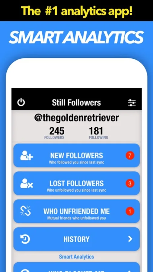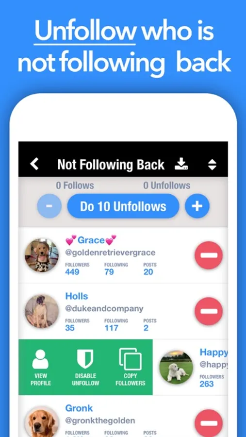 Let the app find out who is not following back, your fans, your new followers, your lost followers...
