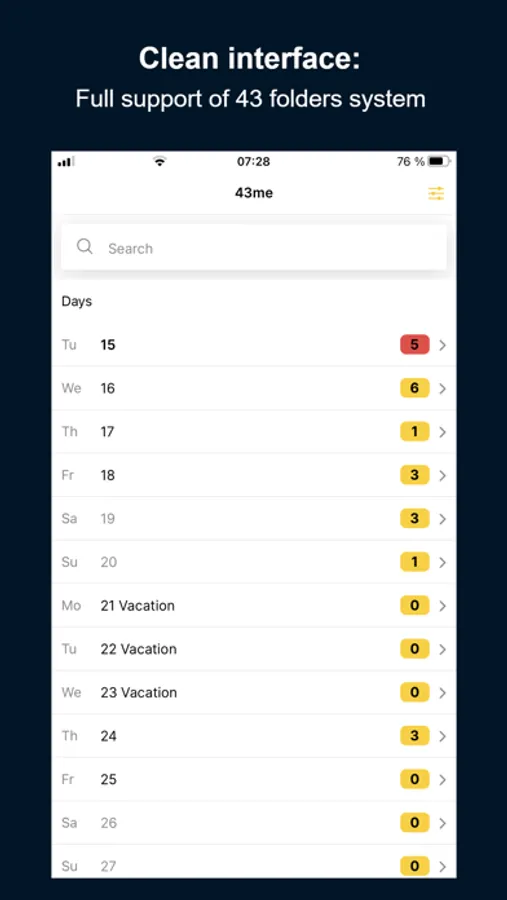 We as humans, procrastinate a lot, but with 43me, the digital to-do task manager app, you can get more done and stay in greater control. That’s why we built you the easiest productive task tracker through which you can schedule your daily routines. With 43me as your schedule maker, you can make two types of folders: daily folders and monthly folders. Put your daily routines (goals) scattered into the folders and focus only what needs your attention today. Our time management app gives you full digital support of the 43 folder systems with full automation.