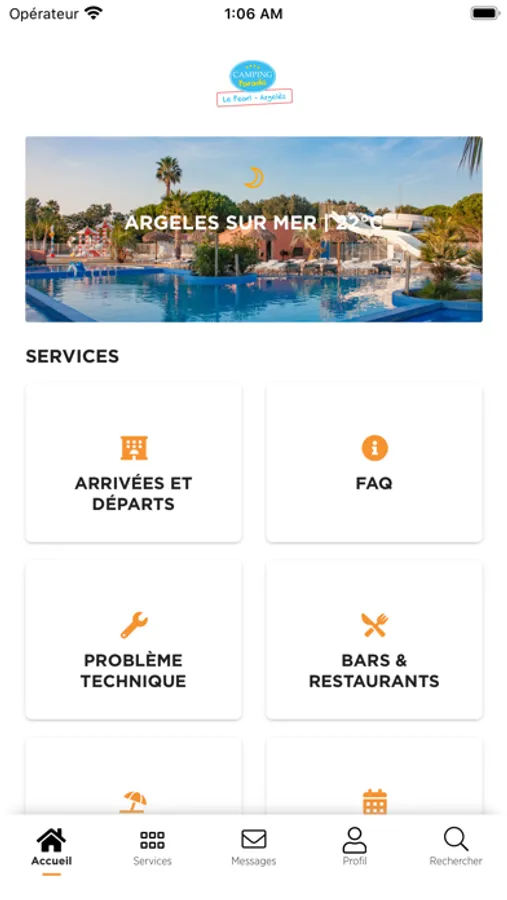 - Discover the different services of your campsite (restaurants, bars, grocery store...)