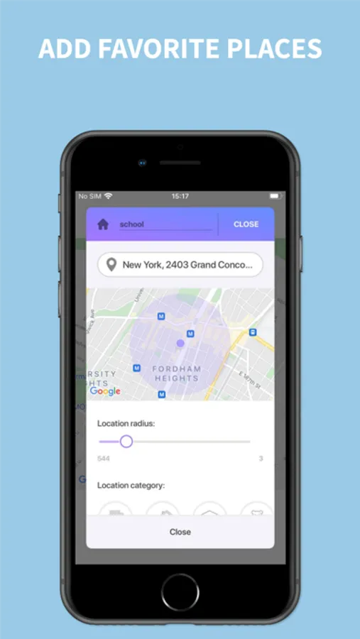 - Add frequently visited places (home, school, kindergarten, work, etc.) and receive instant notifications about group members' arrivals and departures