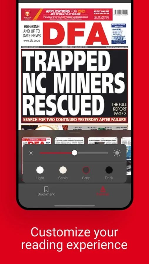 Launched in 1878, the Diamond Fields Advertiser is the oldest newspaper in the Northern Cape. It is recognised as the independent voice of the Northern Cape; informing, empowering and championing the cause of the province and its people, every day without fear, favour or prejudice in accordance with the highest journalistic standards in the country.