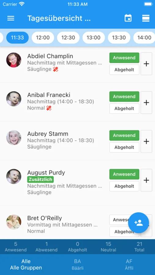 - Temporäre Kinder einplanen welche spontan zusätzlich einen Tag in die Kita kommen