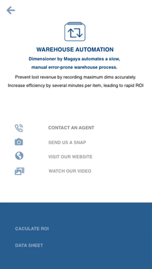 Download the app now to see how empty space in your warehouse can earn you revenue. Run the built-in ROI Calculator to get the convincing data you need to prove the Dimensioner is right for your company.
