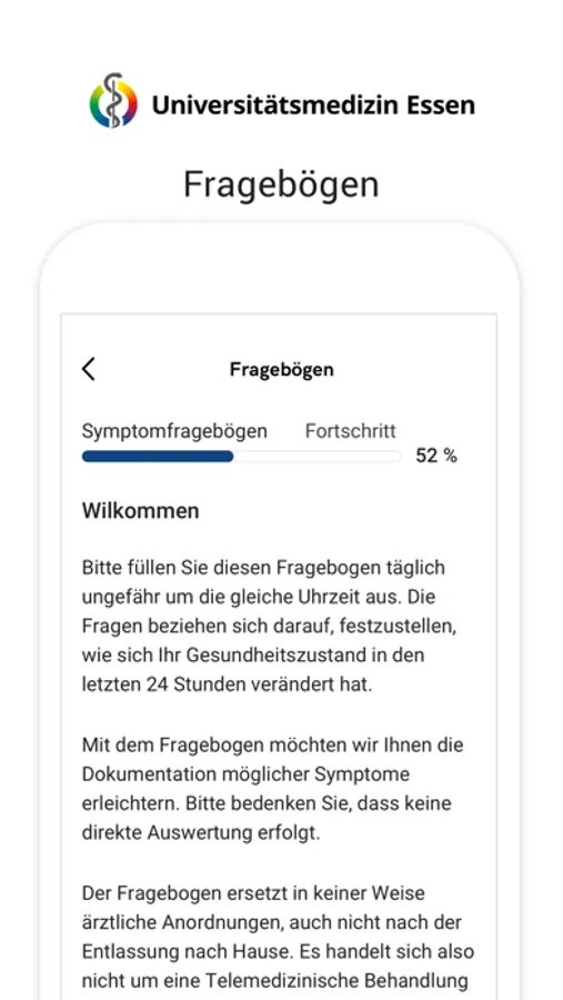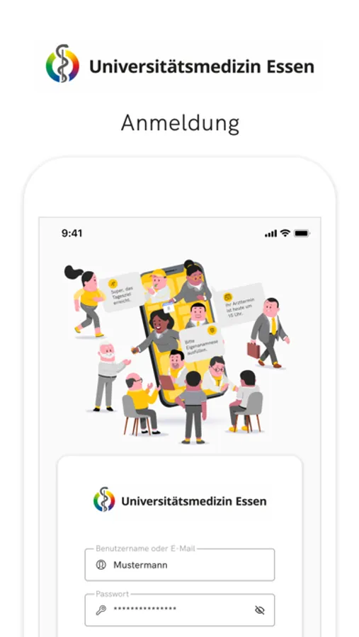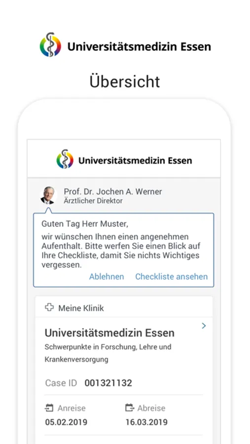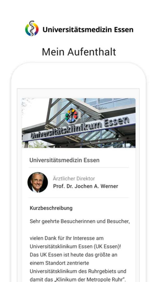 Als Patient der Universitätsmedizin Essen können Sie die App nach Anmeldung jederzeit auf Ihrem Smartphone nutzen.
