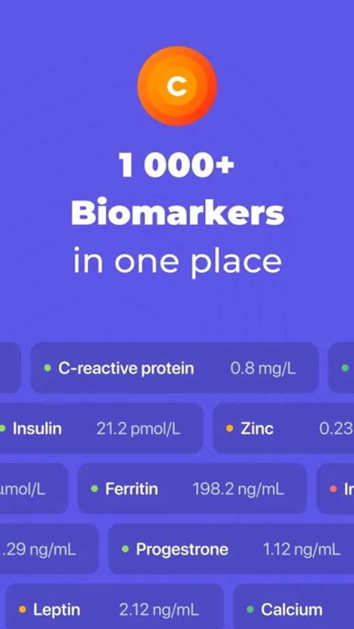 – 1000+ biomarkers (cholesterol, insulin, glucose to name a few), their reference ranges