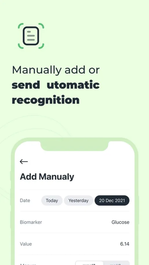 – Simply take a photo of the bloodwork to have it in the app, we have automatic optical results recognition