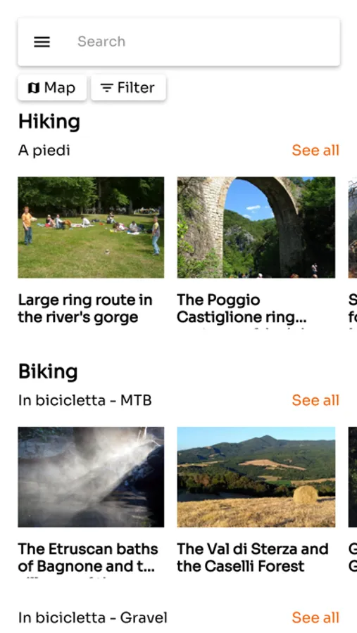 + navigare la mappa con tutti i percorsi tematici e sui Cammini, anche in modalità offline!